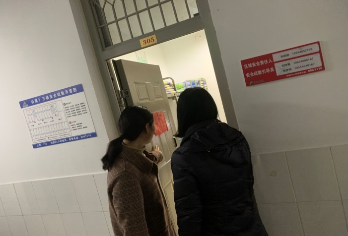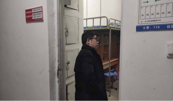 ? ? ? ?每走进一个寝室,老师都仔细查看学生寝室设施,并把存在问题的寝室拍照纪录下来,老师表示大家有问题可以及时向老师反应,学校会帮助大家解决难题。他们亲切的与学生交谈,询问学生学习和生活等情况,并提醒同学们在平常的生活中,务必注意财物安全、用电安全、人身安全,保持宿舍卫生、加强内务整理。